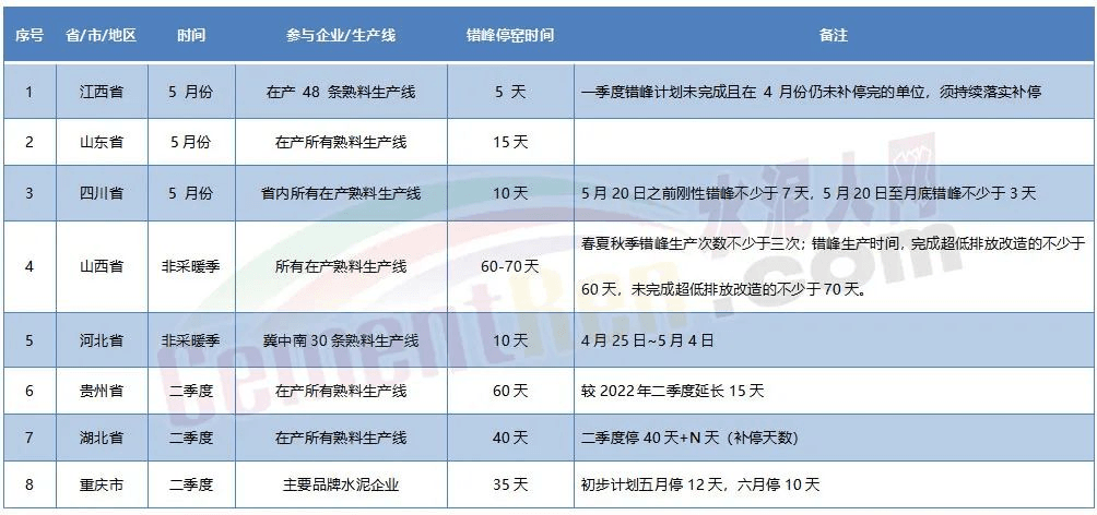 近來(lái),包括河北、山東 、山西、遼寧、貴州、四川在內(nèi)的十幾個(gè)省份水泥企業(yè)開(kāi)啟了二季度錯(cuò)峰生產(chǎn)。同期因市場(chǎng)需求下滑,企業(yè)庫(kù)存持續(xù)創(chuàng)新高,為化解產(chǎn)銷矛盾,其他區(qū)域企業(yè)也陸續(xù)開(kāi)始自主停窯。