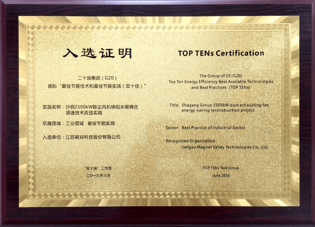 2、入選G20“國際雙十佳”(節(jié)能領(lǐng)域最高榮譽(yù)),第一屆2014年,第二屆2019年,入選中國企業(yè)僅三家;