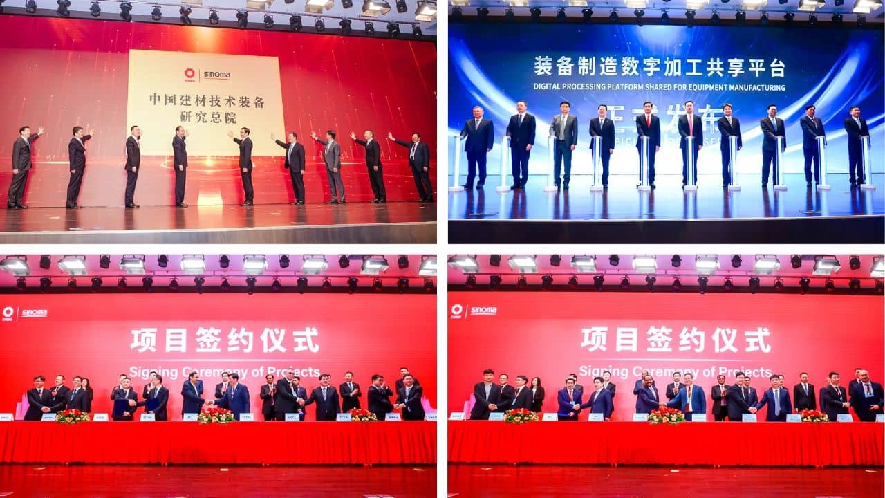 5月17-18日,中國建材集團黨委書記、董事長,中國建材股份黨委書記、董事長周育先受邀參加第七屆世界智能大會開幕式,并出席數(shù)字賦能制造峰會暨中材國際首屆水泥綠色智能發(fā)展峰會發(fā)表致辭,為中國建材技術(shù)裝備研究總院揭牌,見證中材國際項目集體簽約和裝備制造數(shù)字加工共享平臺發(fā)布。中國建材集團黨委常委、副總經(jīng)理,中國建材股份黨委副書記、總裁魏如山;中國工程院院士,中國建材集團總工程師,凱盛科技董事長彭壽;中國建材股份黨委副書記,中材國際黨委書記、董事長劉燕;中國建材股份黨委常委,新天山水泥黨委書記、副董事長肖家祥;中材國際黨委副書記、總裁印志松;中材國際副總裁、天津水泥院董事長何小龍等出席峰會。