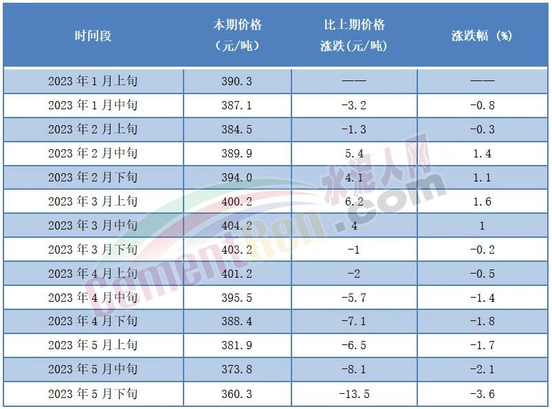 從國家統(tǒng)計(jì)局公布的數(shù)據(jù)可見,從3月下旬開始流通領(lǐng)域水泥價(jià)格持續(xù)下滑。環(huán)比年內(nèi)最高價(jià)404.2元/噸,下跌了43.9元/噸。