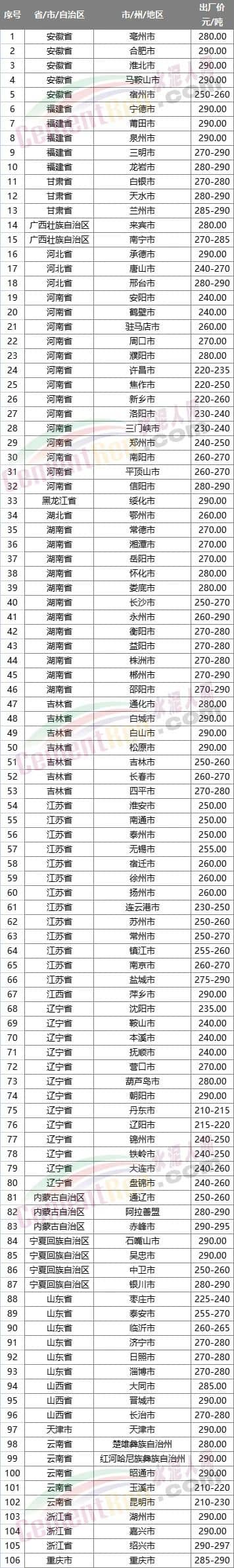 大連永盛水泥制造有限公司通知稱,根據(jù)當(dāng)前市場(chǎng)行情以及煤炭等原材料價(jià)格大幅上漲,能耗雙控限產(chǎn)限電導(dǎo)致水泥成本大幅度上升,為了持續(xù)給用戶提供優(yōu)質(zhì)產(chǎn)品,公司根據(jù)集團(tuán)要求研究決定,自2023年6月21日8時(shí)起對(duì)公司預(yù)收款產(chǎn)品及現(xiàn)行銷售價(jià)格作出如下調(diào)整。調(diào)整后PO42.5散報(bào)價(jià)260元/噸。