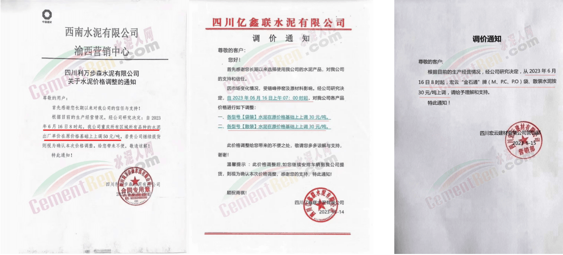 重慶區(qū)域南桐特種水泥、青鵬水泥、銅梁西南水泥、利萬步森水泥、億鑫聯(lián)水泥、宏云建材等主要品牌企業(yè)復(fù)價(jià)上調(diào)30~50元/噸。
