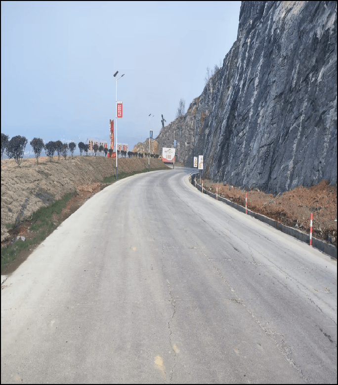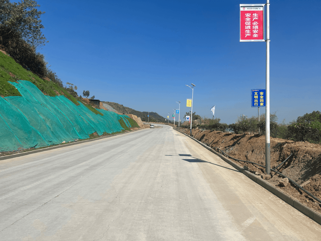 天津礦山應(yīng)用公司專利《一種礦山爆破結(jié)構(gòu)以及其爆破方法》,專利號(hào):ZL 2020 1 1265116.X,《一種用于礦山穿孔爆破的防塵裝置》,專利號(hào):ZL 2022 2 0511680.3,完成道路路基、路面施工。