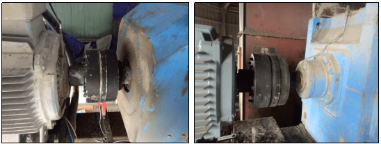 無(wú)獨(dú)有偶,山東聯(lián)合王晁水泥有限公司(以下簡(jiǎn)稱“王晁水泥”)亦在其500kW輥壓機(jī)傳動(dòng)系統(tǒng)中采用了江蘇磁谷同步永磁耦合器新型柔性傳動(dòng)保護(hù)裝置,運(yùn)行效果良好,振動(dòng)大幅減小(現(xiàn)場(chǎng)測(cè)量振動(dòng)值:電機(jī)端水平2.3 mm/s,垂直0.9 mm/s,軸0.2 mm/s;減速機(jī)端水平0.4 mm/s,垂直0.2 mm/s,軸0.4mm/s)。