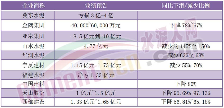 近來多家上市公司發(fā)布了上半年業(yè)績預告,除塔牌水泥預告上半年實現(xiàn)凈利潤4.54億元-5.07億元,同比增長160%-190%外,絕大多數(shù)企業(yè)業(yè)績出現(xiàn)50%以上的下滑。