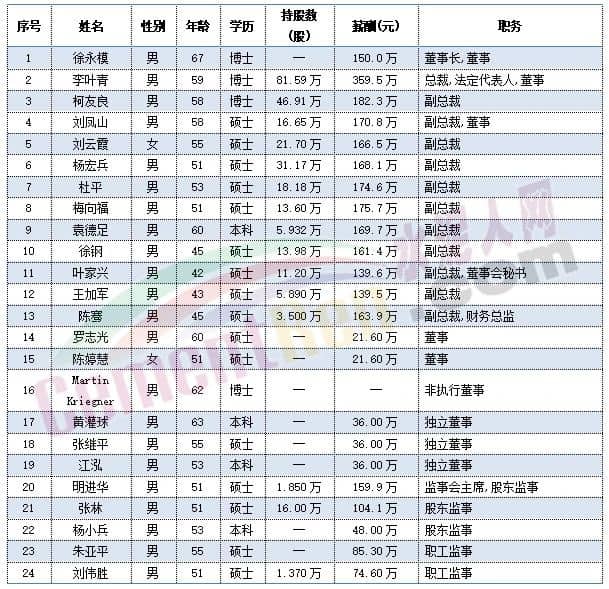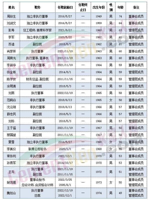 中國(guó)建材董事會(huì)成員及管理層成員中包括執(zhí)行總裁肖家祥,非執(zhí)行董事李新華在內(nèi)的多位高管年齡處于59-60歲之間。