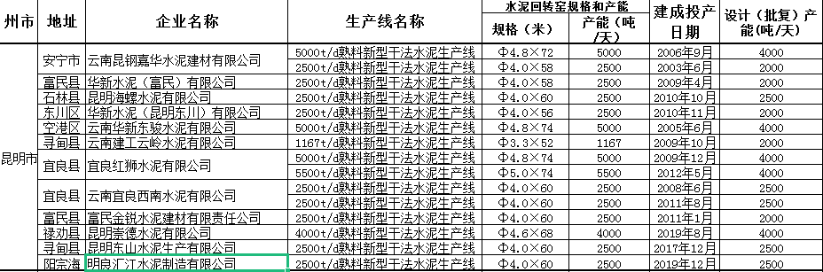 昆明地區(qū)水泥熟料企業(yè)數(shù)據(jù)(來自云南省工信廳)