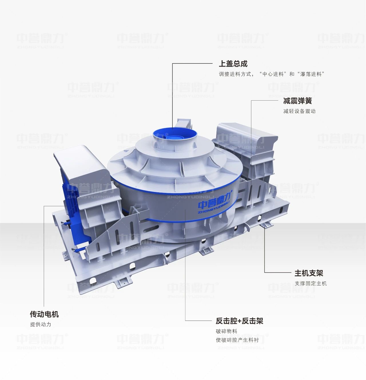 中譽(yù)鼎力新型沖擊破碎機(jī)通過(guò)中心進(jìn)料+瀑落進(jìn)料的方式,以多重的設(shè)計(jì)優(yōu)勢(shì)和優(yōu)質(zhì)的制造選材,確保設(shè)備的平穩(wěn)運(yùn)行和更長(zhǎng)壽命;同時(shí)提高設(shè)備可靠性,減少停機(jī)時(shí)間,降低維修成本。