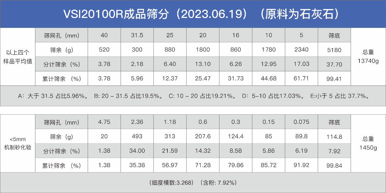 表:硬巖破碎成品的化驗(yàn)結(jié)果