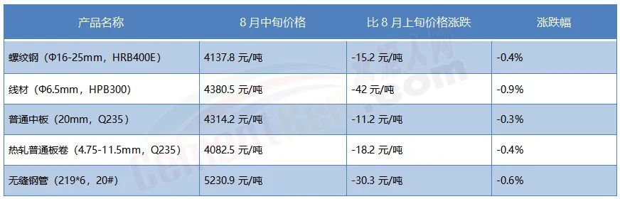 國家統(tǒng)計(jì)局24日公布的數(shù)據(jù)顯示,全國流通領(lǐng)域9大類50種重要生產(chǎn)資料市場價(jià)格,2022年8月中旬與8月上旬相比,23種產(chǎn)品價(jià)格上漲,22種下降,5種持平。水泥人網(wǎng)注意到與水泥相關(guān)的鋼鐵、煤炭等都在下跌。