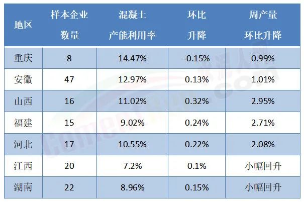 其中,安徽、山西、河北近期天氣利好施工,攪拌站恢復(fù)正常供應(yīng),混凝土發(fā)運(yùn)量出現(xiàn)小幅回升;重慶新開工項(xiàng)目較少,需求不佳,混凝土發(fā)運(yùn)量有所降低;福建市場新增較少,多數(shù)已在手訂單項(xiàng)目有所開工,因此帶來些許新增需求,短期來看,項(xiàng)目工程進(jìn)度受到資金困擾較大。