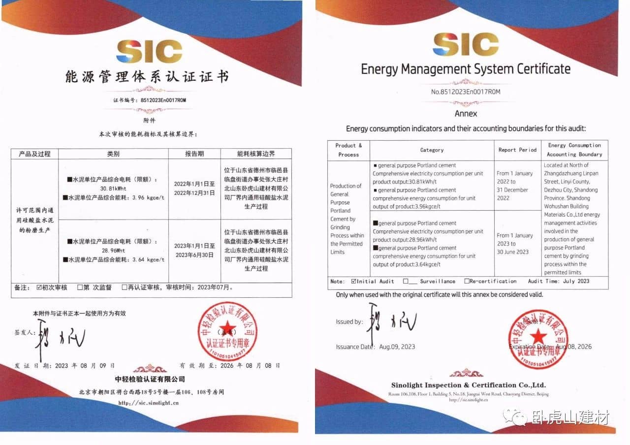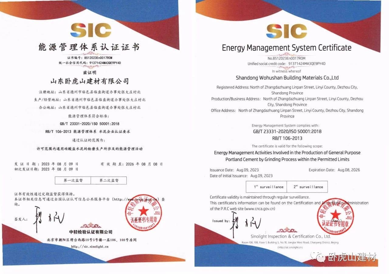同時,專家組對我公司質(zhì)量方面的嚴(yán)格管理和運行記錄的細(xì)致提出表揚,對于山東臥虎山建材有限公司的能源、質(zhì)量、環(huán)境和職業(yè)健康安全管理體系管理規(guī)范程度、運行有效程度給予高度認(rèn)可,一致認(rèn)為公司在質(zhì)量、環(huán)境、職業(yè)健康安全和能源方面的管理符合體系運行的規(guī)定,同意推薦。同時,為保證公司體系更加有效運行,提出了寶貴建議。經(jīng)過中輕檢審核專家對公司上報材料和專家意見融合評審后,2023年8月9日正式發(fā)放證書。