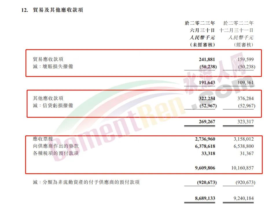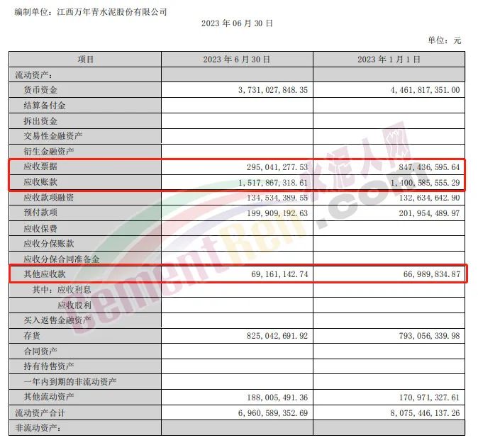 2023年上半年亞洲水泥應(yīng)收賬款5.6億,應(yīng)收票據(jù)8.05億,其他應(yīng)收款12.2億。