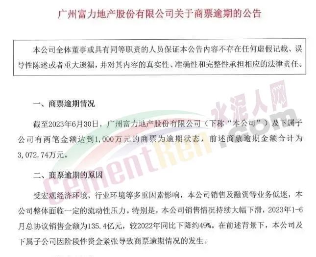 富力地產(chǎn):3072.74萬元商票逾期