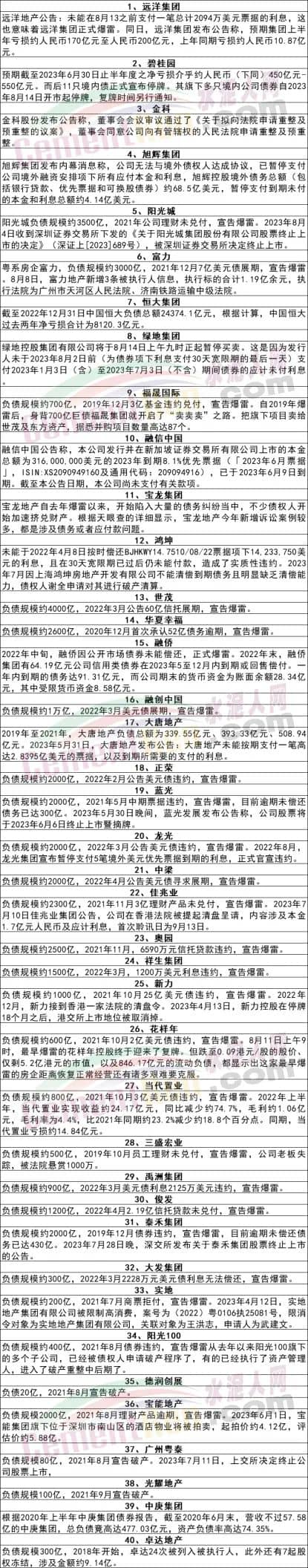 據(jù)水泥人網(wǎng)不完全統(tǒng)計(jì),目前已有40多家龍頭房企已經(jīng)宣布違約爆雷,甚至停牌退市,遠(yuǎn)洋集團(tuán)未支付美元票據(jù)利息、碧桂園11只境內(nèi)債正式停牌、陽光城理財(cái)未兌付、綠地集團(tuán)未支付債券應(yīng)付利息、世茂集團(tuán)60億信托展期、正榮美元債違約、藍(lán)光票據(jù)違約、花樣年美元債違約……他們欠下的賬款和未付的商票又該如何處置呢?