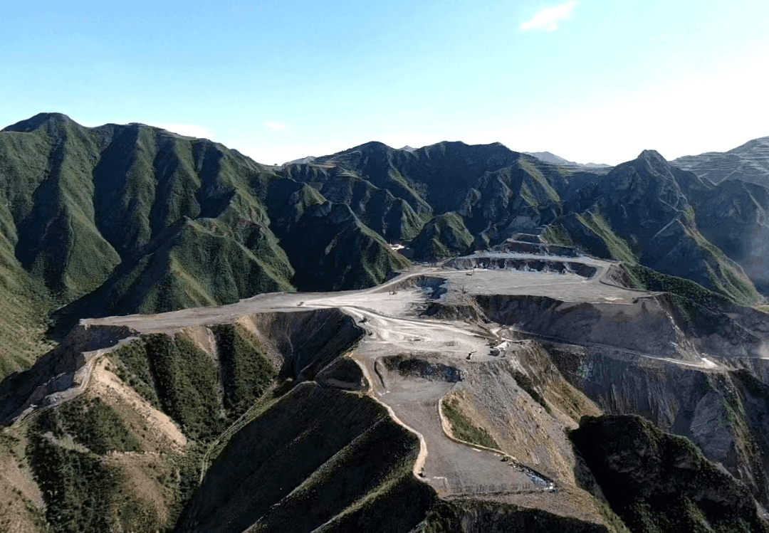 綠色礦山與蔚藍天空,礦車陣列譜寫宏偉畫卷