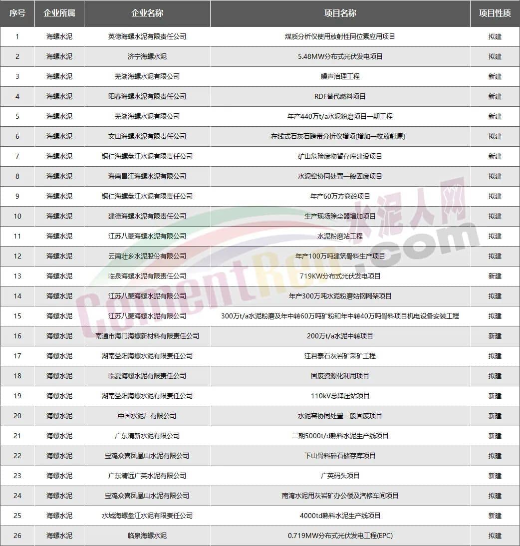 大手筆!海螺、中國(guó)建材、紅獅、山水“狂砸”300多個(gè)項(xiàng)目!