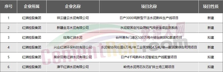 紅獅水泥:新建擬建項(xiàng)目共6個(gè)