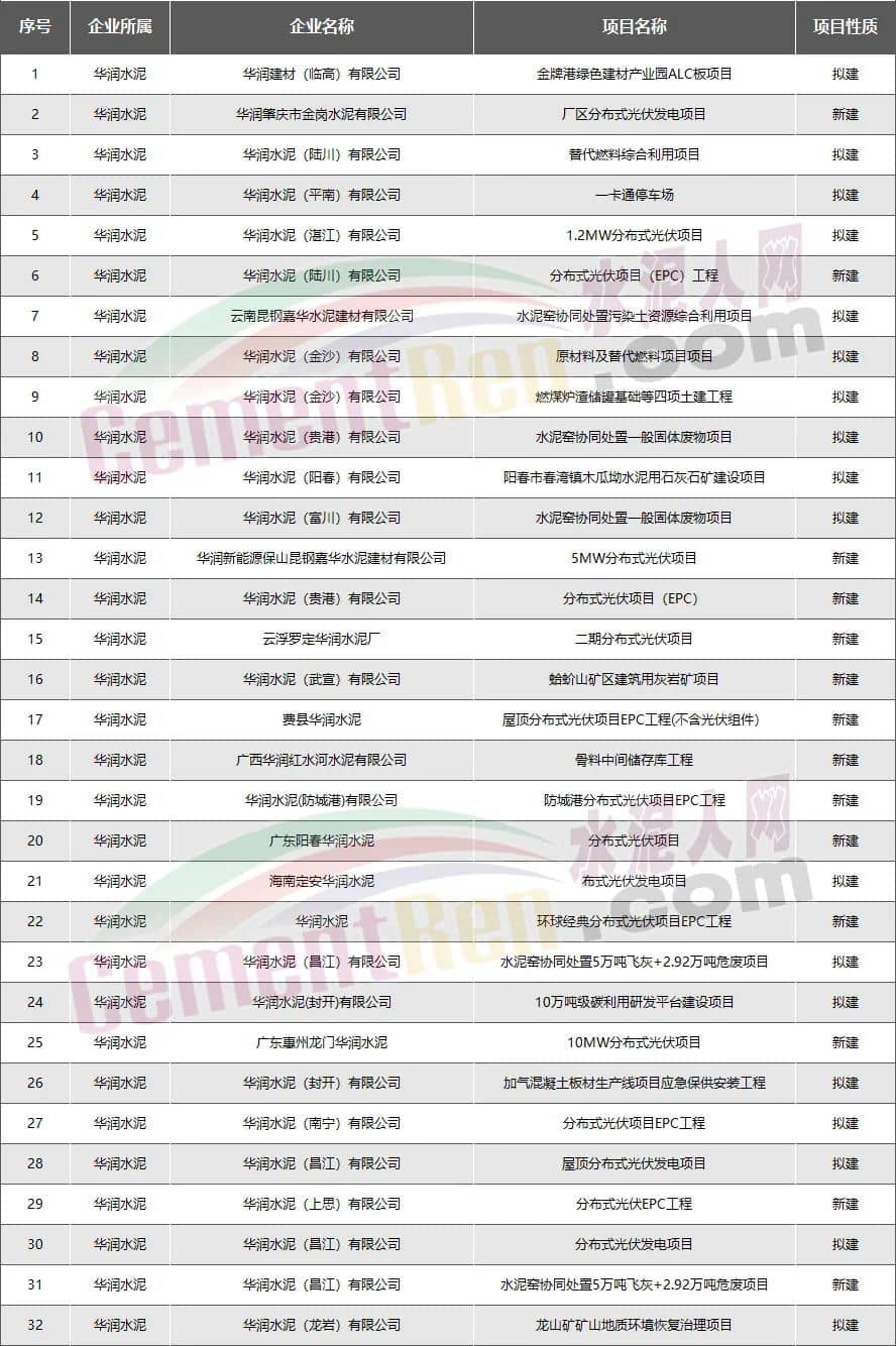 華潤(rùn)水泥:新建擬建項(xiàng)目共32個(gè)
