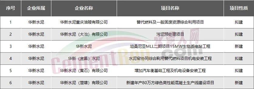 華新水泥:新建擬建項(xiàng)目共6個(gè)
