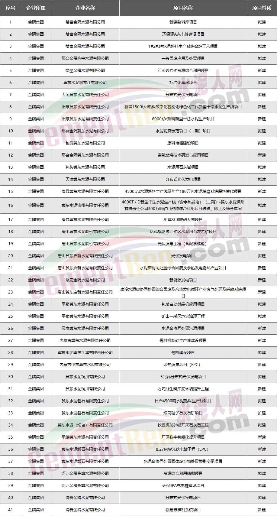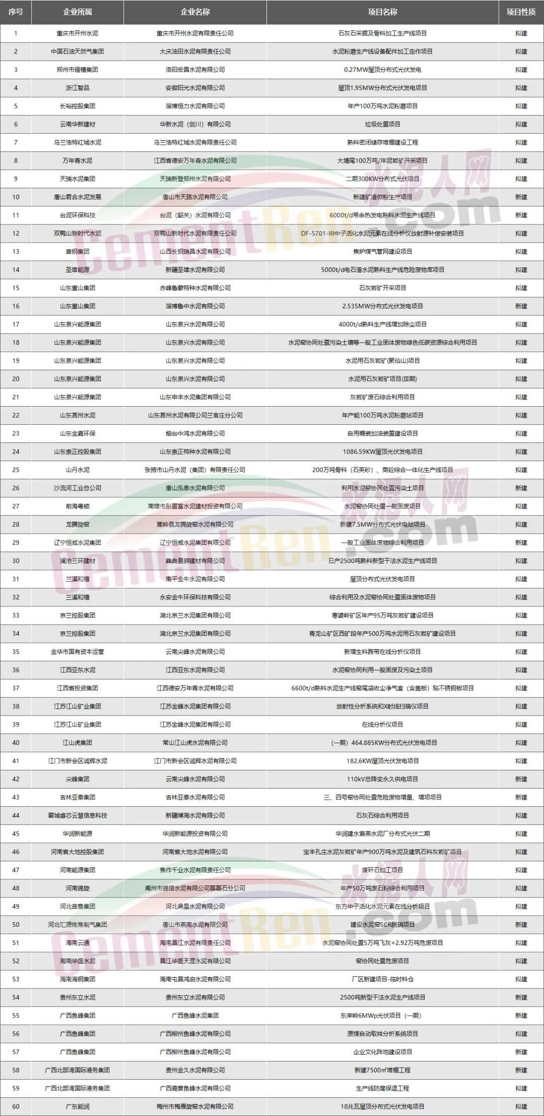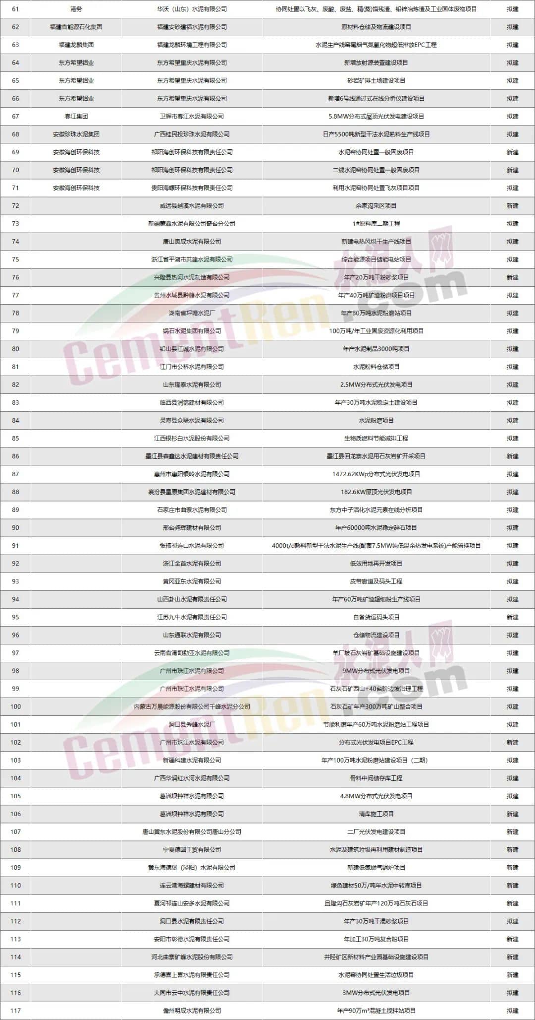 其他水泥企業(yè):新建擬建項(xiàng)目共117個(gè)