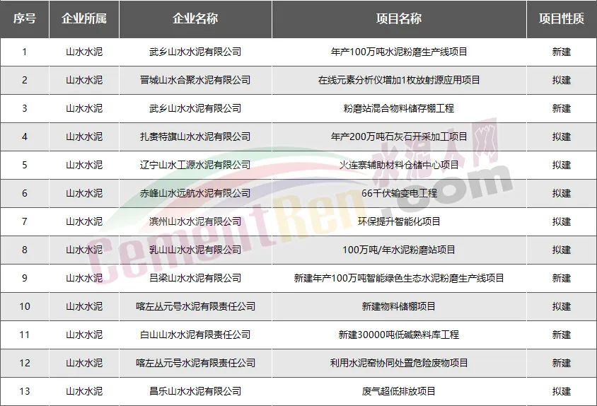 山水水泥:新建擬建項(xiàng)目共13個(gè)