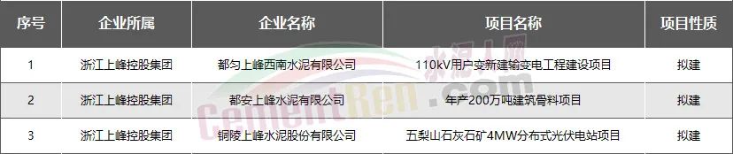 浙江上峰控股集團(tuán):新建擬建項(xiàng)目共3個(gè)