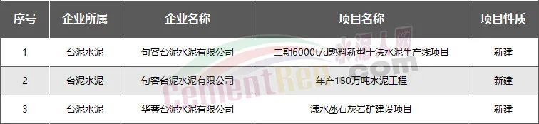 臺(tái)泥集團(tuán):新建擬建項(xiàng)目共3個(gè)