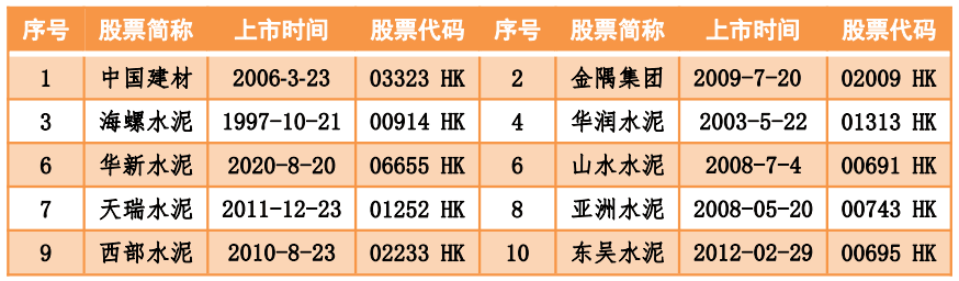 一、水泥行業(yè)上市公司概況