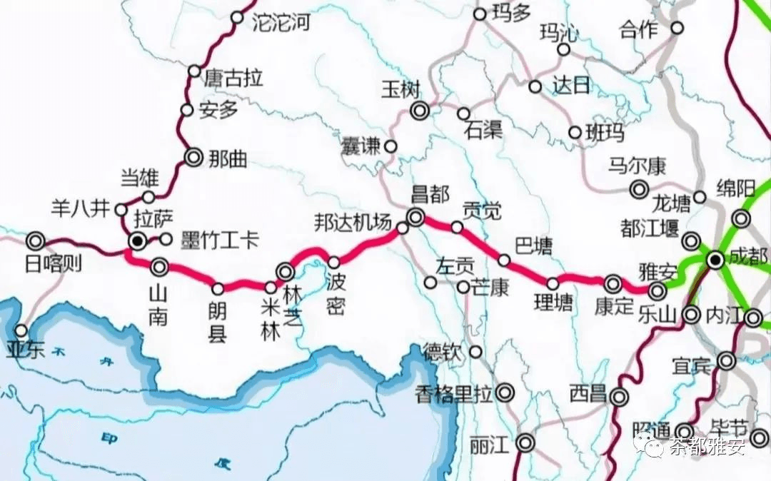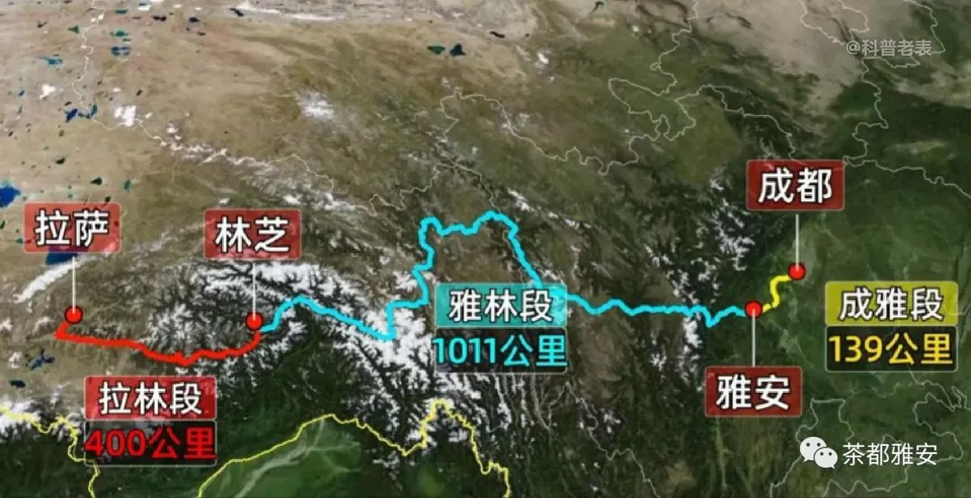 川藏鐵路從成都到拉薩,可以分成三段來看。成都到雅安的成雅段,長140公里,雅安到林芝的雅林段,長1010公里,拉薩到林芝的拉林段,長400公里。成雅段和拉林段已建成通車,剩下中間的雅林段于2020年11月初開工建設(shè),工期預(yù)計(jì)為10年,2032年左右雅林段將全線通車,設(shè)計(jì)時(shí)速為120~200公里/小時(shí)。