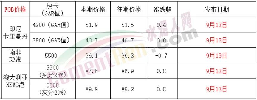 從近期現(xiàn)貨市場來看,產(chǎn)地方面,冶金、化工、建材等非電需求也成為產(chǎn)地市場的主要支撐力。9月13日,產(chǎn)地個別優(yōu)質(zhì)煤種市場價格突破900元/噸,而進(jìn)口煤價單噸FOB報(bào)價依然在600多元。
