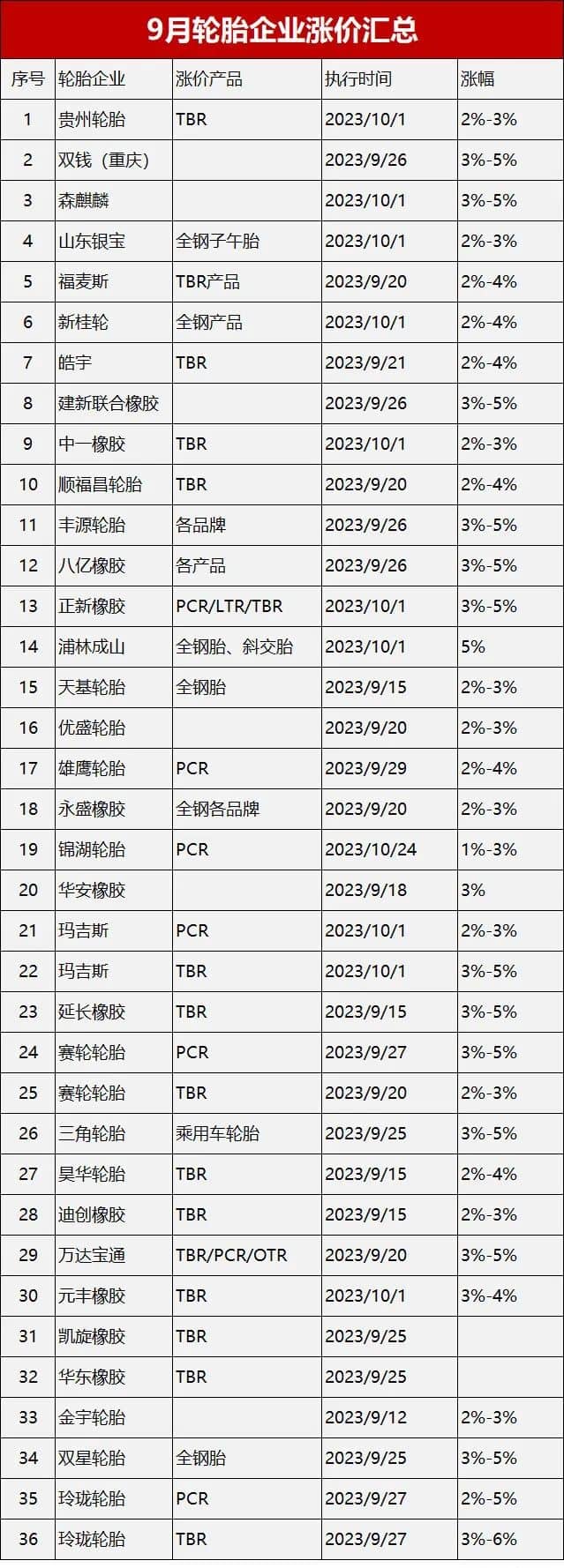 40多家輪胎廠漲價
