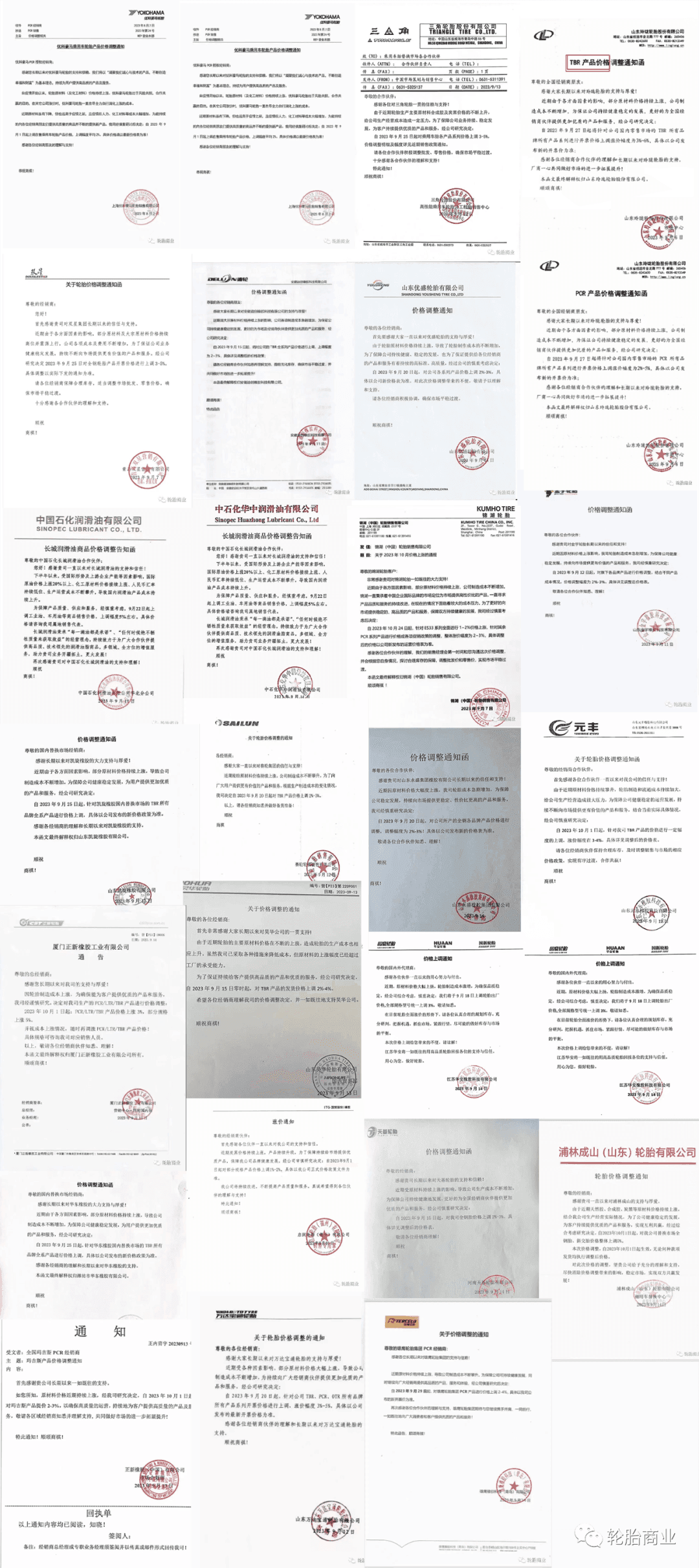 近期,40多家輪胎企業(yè)發(fā)布漲價通知,其中有針對全鋼胎的,也有針對半鋼胎的。正新、瑪吉斯、賽輪、玲瓏等企業(yè)更是先后發(fā)布多張漲價通知,對多品牌、多品類產(chǎn)品漲價,漲幅在3%-5%左右。