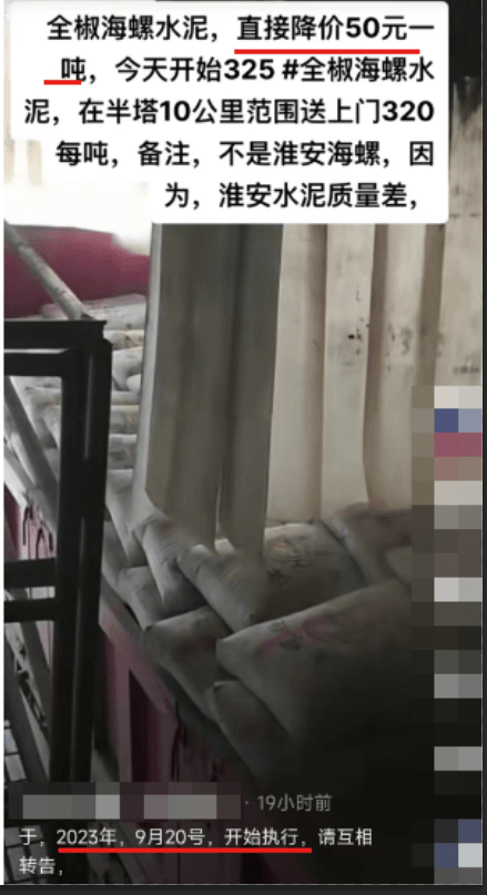 9月20日晚間,海螺水泥一經(jīng)銷(xiāo)商發(fā)消息稱(chēng),“全椒海螺水泥直降50元/噸,自當(dāng)日開(kāi)始,32.5全椒海螺水泥在半塔10公里范圍內(nèi)送貨上門(mén)320元/噸。并備注稱(chēng),不是淮安海螺。”