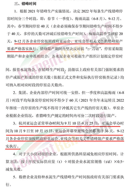 其中提到,9月~12月各企業(yè)停窯按照政府亞運會、亞殘會等相關(guān)文件的錯峰限產(chǎn)要求嚴格落實執(zhí)行。杭州亞運會正常舉辦時間為9月10日~9月25日,亞殘會舉辦時間為10月9日至10月15日,亞運會開幕至亞殘會閉幕共計36天,9月至12月各企業(yè)停窯須按照政府亞運會、亞殘會等相關(guān)文件錯峰限產(chǎn)要求嚴格落實執(zhí)行。與此同時,長三角地區(qū)水泥市場迎來下半年以來的首輪調(diào)價。