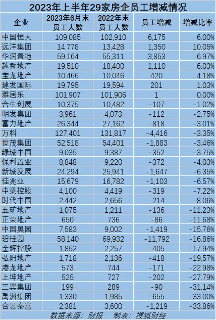 相比2022年,絕大多數(shù)房企上半年月均福利下滑,時代中國由去年月均1.68萬元降至今年5300元,員工人均福利每月減少11500元,薪酬福利猛降68%;禹州集團,相比2022年,員工人均福利今年上半年減少7400元,降幅達38%。