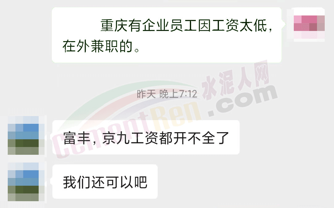 重慶某水泥企業(yè)工會負(fù)責(zé)人表示:富豐、京九工資都開不全了。