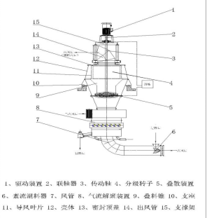 (5)獨(dú)特設(shè)計(jì)的分級流場和立式分級輪,可以將產(chǎn)品粒度進(jìn)行分級,降低了粉體與分級輪的摩擦,大大地延長了分級輪的使用壽命。