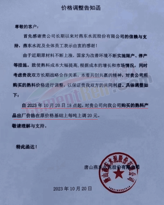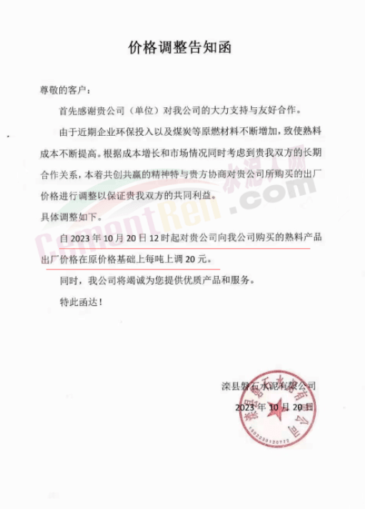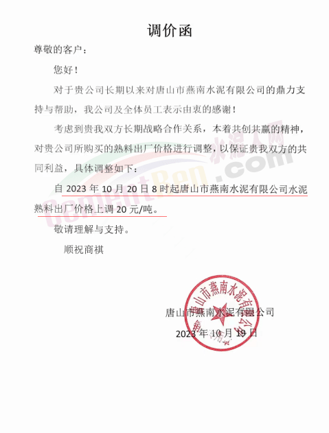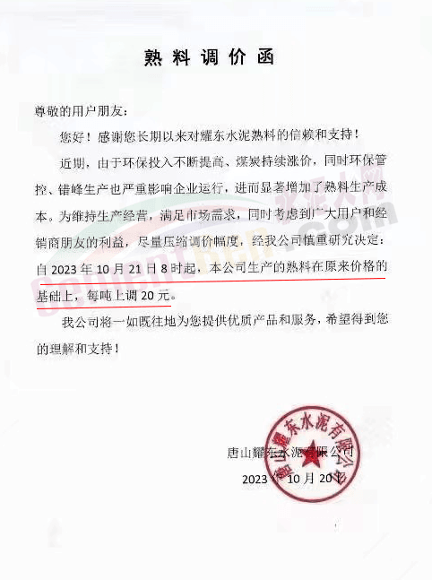 同期,河北唐山冀東水泥、耀東水泥、燕東水泥、燕南水泥、磐石水泥等多家企業(yè)通知上調(diào)熟料報(bào)價20元/噸。