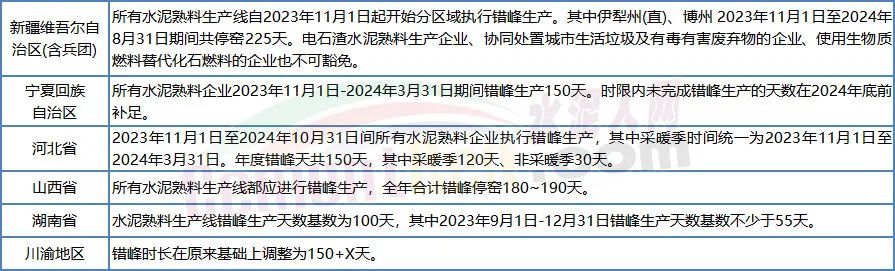 近期,新疆、寧夏等多地公布了2023-2024年錯峰生產(chǎn)計劃。水泥人網(wǎng)注意到,各區(qū)域的停產(chǎn)時間明顯延長,停產(chǎn)要求明顯加嚴。
