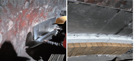 基于凹槽磚復(fù)合納米隔熱板在中國葛洲壩集團水泥有限公司生產(chǎn)線的出色表現(xiàn),湖北京蘭水泥集團有限公司在兩條回轉(zhuǎn)窯過渡帶定期維修更換耐火磚時,決定全部采用凹槽磚復(fù)合15 mmWDS納米隔熱板,用于降低回轉(zhuǎn)窯過渡帶外殼的溫度。