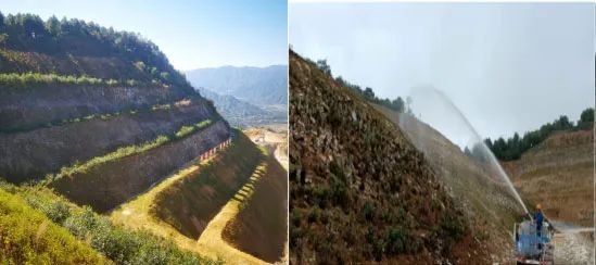 ▲免掛網(wǎng)噴播邊坡復(fù)綠工藝