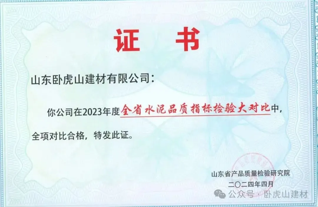 “2023年度全省水泥品質(zhì)指標(biāo)檢驗(yàn)大對(duì)比全相對(duì)比合格”這一榮譽(yù)的獲得,直接反映了山東臥虎山建材有限公司在產(chǎn)品品質(zhì)控制上的嚴(yán)格與卓越。在水泥品質(zhì)指標(biāo)的大對(duì)比中實(shí)現(xiàn)全相對(duì)比合格,證明了其產(chǎn)品不僅符合國(guó)家及行業(yè)標(biāo)準(zhǔn),而且在同行業(yè)中處于領(lǐng)先地位,這對(duì)于增強(qiáng)消費(fèi)者信心、提升品牌形象具有重要意義。