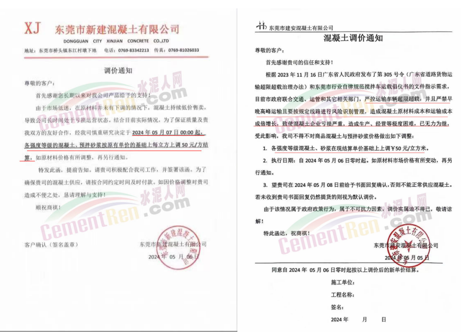 同期,廣東東莞多家混凝土企業(yè)通知上調(diào)產(chǎn)品報價50元/方。東莞市新建混凝土有限公司調(diào)價通知稱,由于市場低迷,在原材料并未有下調(diào)的情況下,混凝土價格持續(xù)低價售賣,導致公司長時間處于虧損運營狀態(tài),結(jié)合目前情況,各強度等級混凝土、預(yù)拌砂漿價格上調(diào)50元/方。