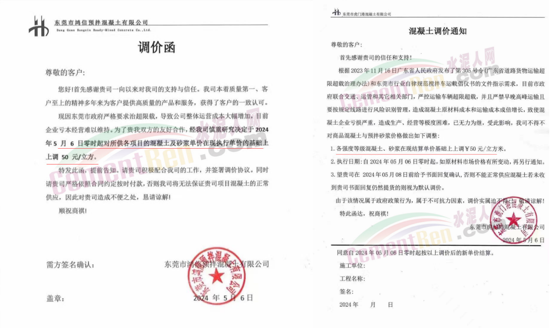 東莞市建安混凝土有限公司通知,目前市政府聯(lián)合交通、運管和其他相關(guān)部門,嚴控運輸車輛超限超載,并且嚴禁早晚高峰運輸且要按規(guī)定線路進行風險識別管理,造成混凝土原材料成本和運輸成本成倍增長,致使混凝土企業(yè)虧損嚴重,造成生產(chǎn)、經(jīng)營等極度困難,已無力為繼。受此影響,公司對各強度等級混凝土、砂漿在現(xiàn)結(jié)算價格基礎(chǔ)上上調(diào)50元/立方米。