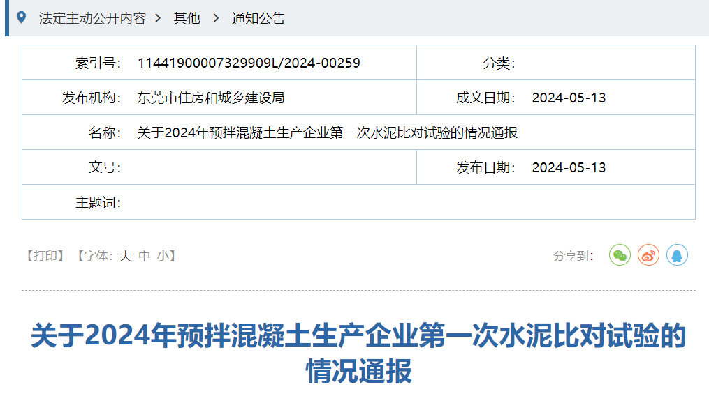 廣東東莞市住建局5月13日消息,為加強(qiáng)對東莞市預(yù)拌混凝土生產(chǎn)企業(yè)的質(zhì)量管理,提高各企業(yè)試驗(yàn)室的檢測能力,東莞市建設(shè)工程質(zhì)量監(jiān)督站站于2024年3月22日組織各預(yù)拌混凝土生產(chǎn)企業(yè)進(jìn)行了2024年第一次水泥比對試驗(yàn),并于5月9日完成試驗(yàn)結(jié)果的統(tǒng)計工作。