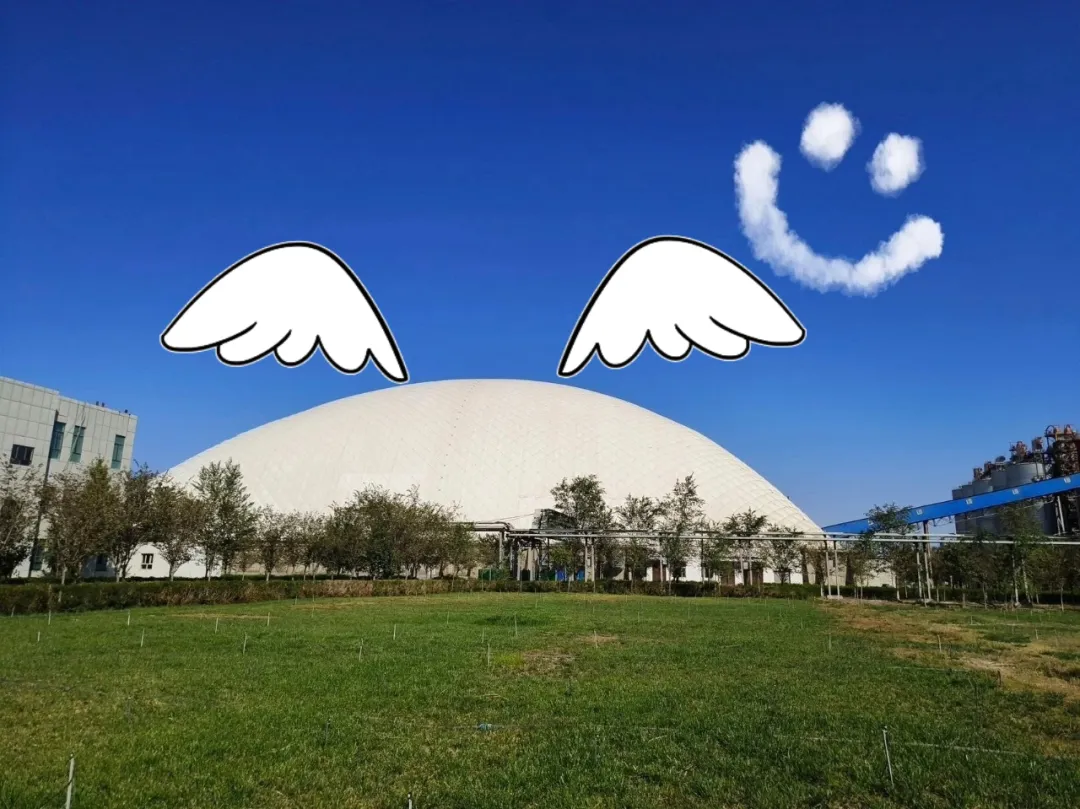 它像一個(gè)巨大的透明氣泡,輕盈的懸浮在地面上——它是坐落在阜康天山水泥公司東北側(cè)的熟料氣膜大棚。它為傳統(tǒng)露天堆場(chǎng)加上“蓋兒”,既能避免下雨時(shí)物料被淋濕,也能防止粉塵污染,是節(jié)能環(huán)保的舉措之一。