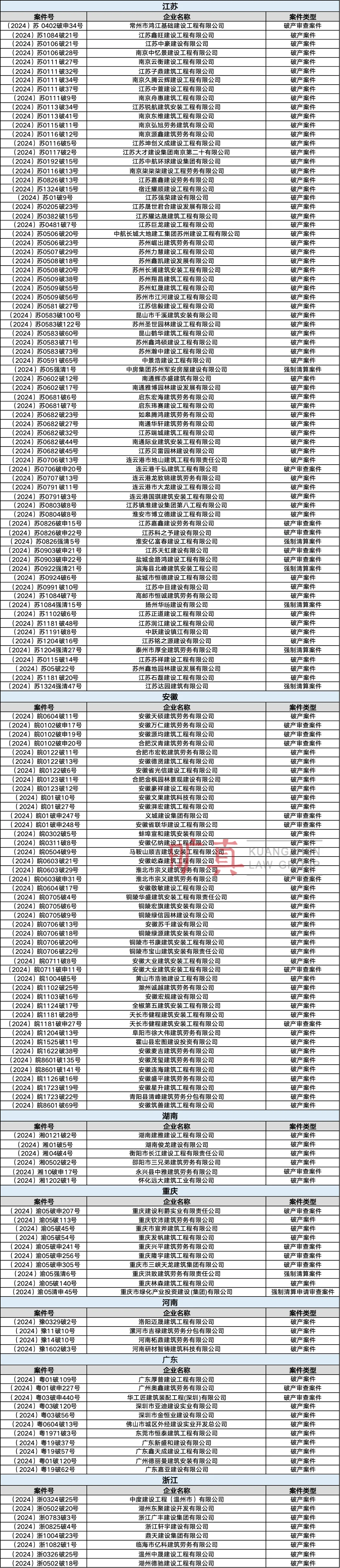 備注:此表為2024年5月1日~31日全國(guó)建筑企業(yè)破產(chǎn)重整案件信息匯總