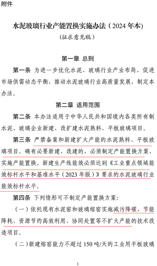 敲黑板畫重點(diǎn)!《水泥玻璃行業(yè)產(chǎn)能置換實(shí)施辦法(2024 年本)(征求意見稿)》全文如下: