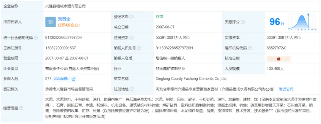 興隆縣福成水泥有限公司天眼查公開信息